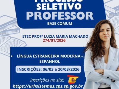 A Etec Profa. Luzia Maria Machado (Etec Arujá) está com inscrições abertas para Processo Seletivo Simplificado de Professor de Ensino Médio e Técnico, na área de Língua Estrangeira Moderna – Espanhol, conforme normas do Centro […]