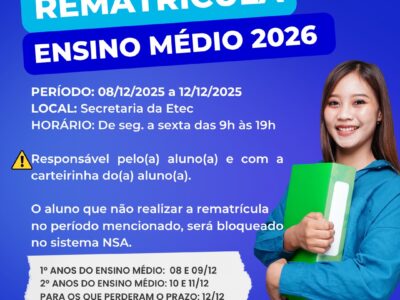 Etec Arujá participa do Simpósio Interno do LEDIS – USP No dia 8 de dezembro de 2025, os alunos Henrique Sodré Alvenaz da Silveira e Isabela dos Santos Ramos do 2º Mtec RH, acompanhados pelo […]