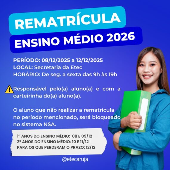 A Etec de Arujá está com inscrições abertas de 24/10 a 07/11 para o processo seletivo de docentes! Se você tem formação e experiência nas áreas de Tecnologia e Inovação, essa pode ser a sua […]
